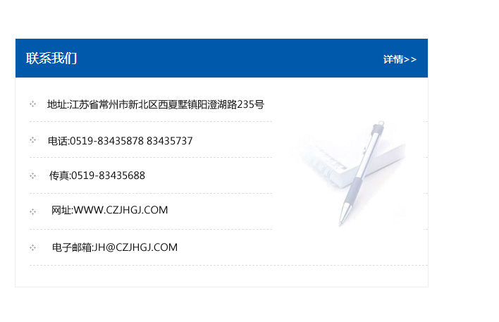 地址:常州市新北區友邦商務大廈1幢16、17層  電話:0519-85101652  傳真:0519-85112595  郵編:213022  網址:www_cz-jiayue_cn.jungleasia.com  郵箱:xiajifengaa@163.com